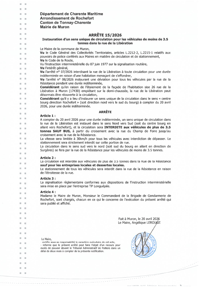 la rue de la liberation est de nouveau ouverte à la circulation en sens unique : sens de la descente (direction rochefort) autorisé.Par Delphine GOUGNARD / 20 avril 2026 Facebook Twitter LinkedIn Email Imprimer