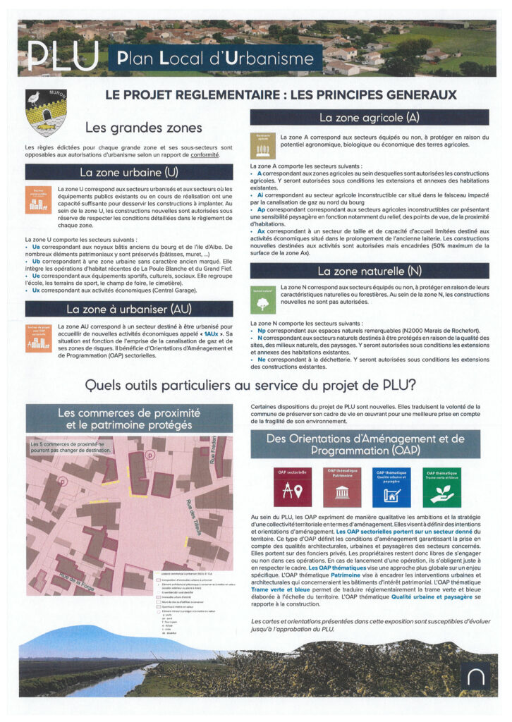 REVISION DU PLU : le projetPar Delphine GOUGNARD / 12 novembre 2025 Ces panneaux sont visibles à l’accueil de la mairie au rez-de-chaussée Facebook Twitter LinkedIn Email Imprimer