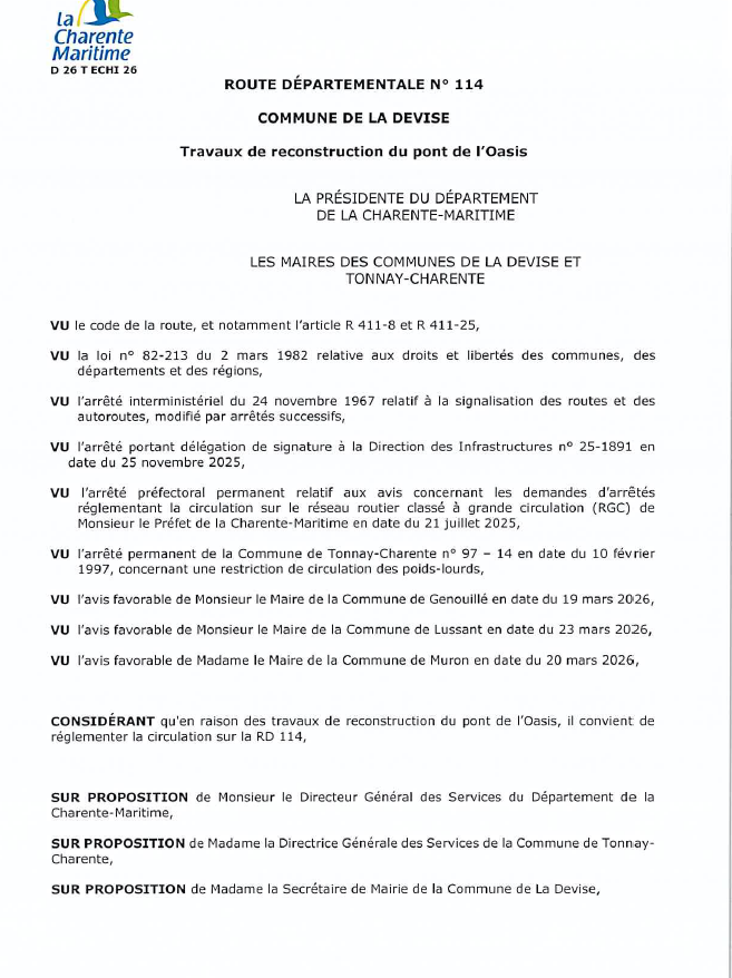 TRAVAUX SUR D 114 – RECONSTRUCTION DU PONT DE L’OASIS – LA DEVISE – DEVIATIONPar Delphine GOUGNARD / 24 avril 2026 Facebook Twitter LinkedIn Email Imprimer