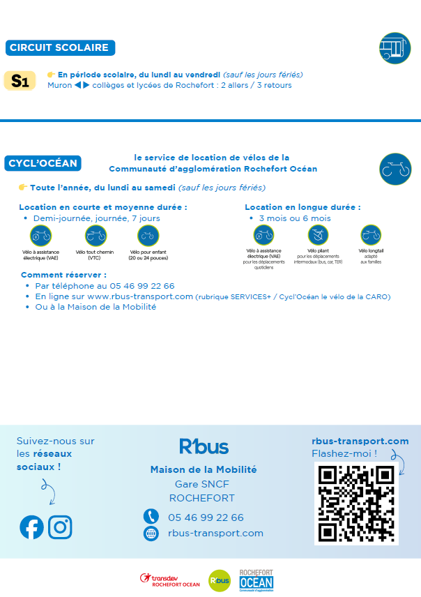 INFORMATIONS HORAIRES LIGNE S1 (DESSERVANT MURON) : https://www.rbus-transport.com/horaires-par-ligne/